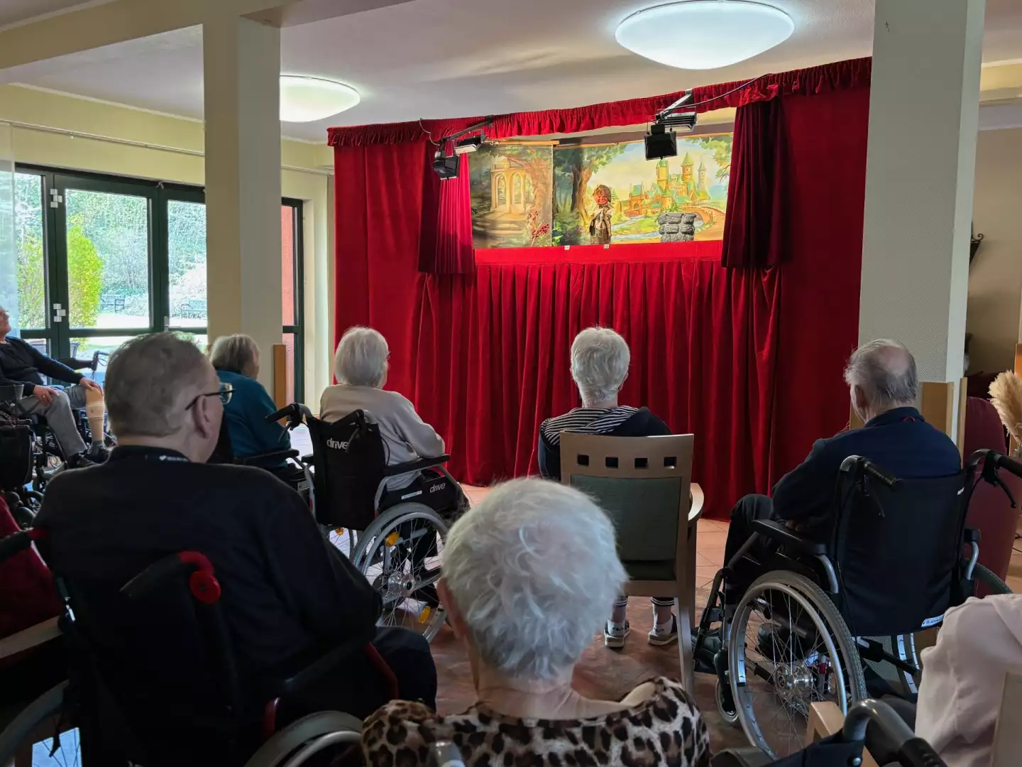 Bereits als die Bühne aufgebaut wurde, strömten die ersten Bewohnern neugierig ins Foyer. Pünktlich 10.00 Uhr ging es los. Das Puppentheater "La Bonny" zog mit dem Stück "Der Froschkönig" unsere Senioren in ihren Bann.