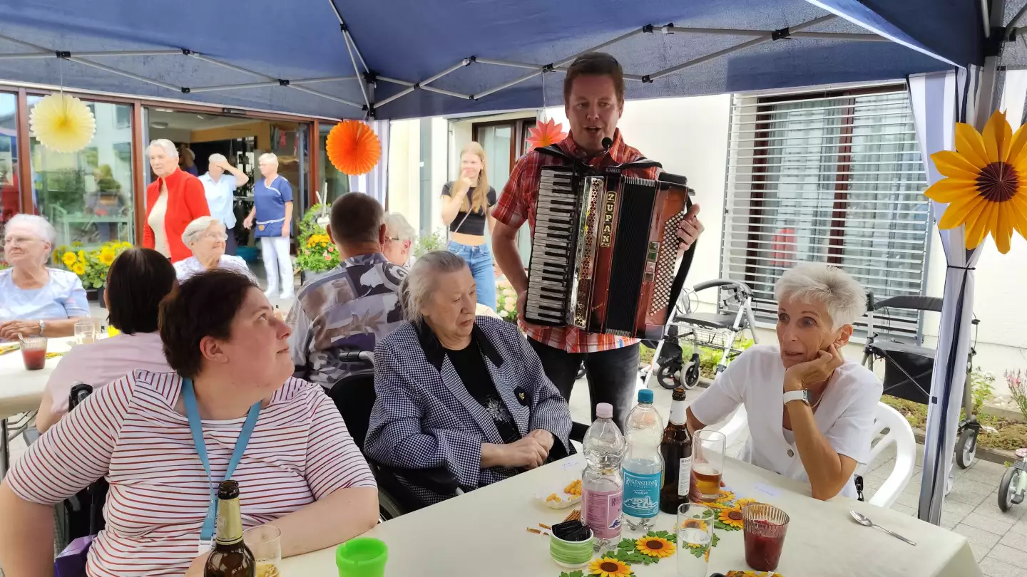 Auch in diesem Jahr feierten wir bei strahlendem Sonnenschein unser Sommerfest, musikalisch wurde das Fest durch Herrn Meisezahl mit Gesang und Akkordeon begleitet.