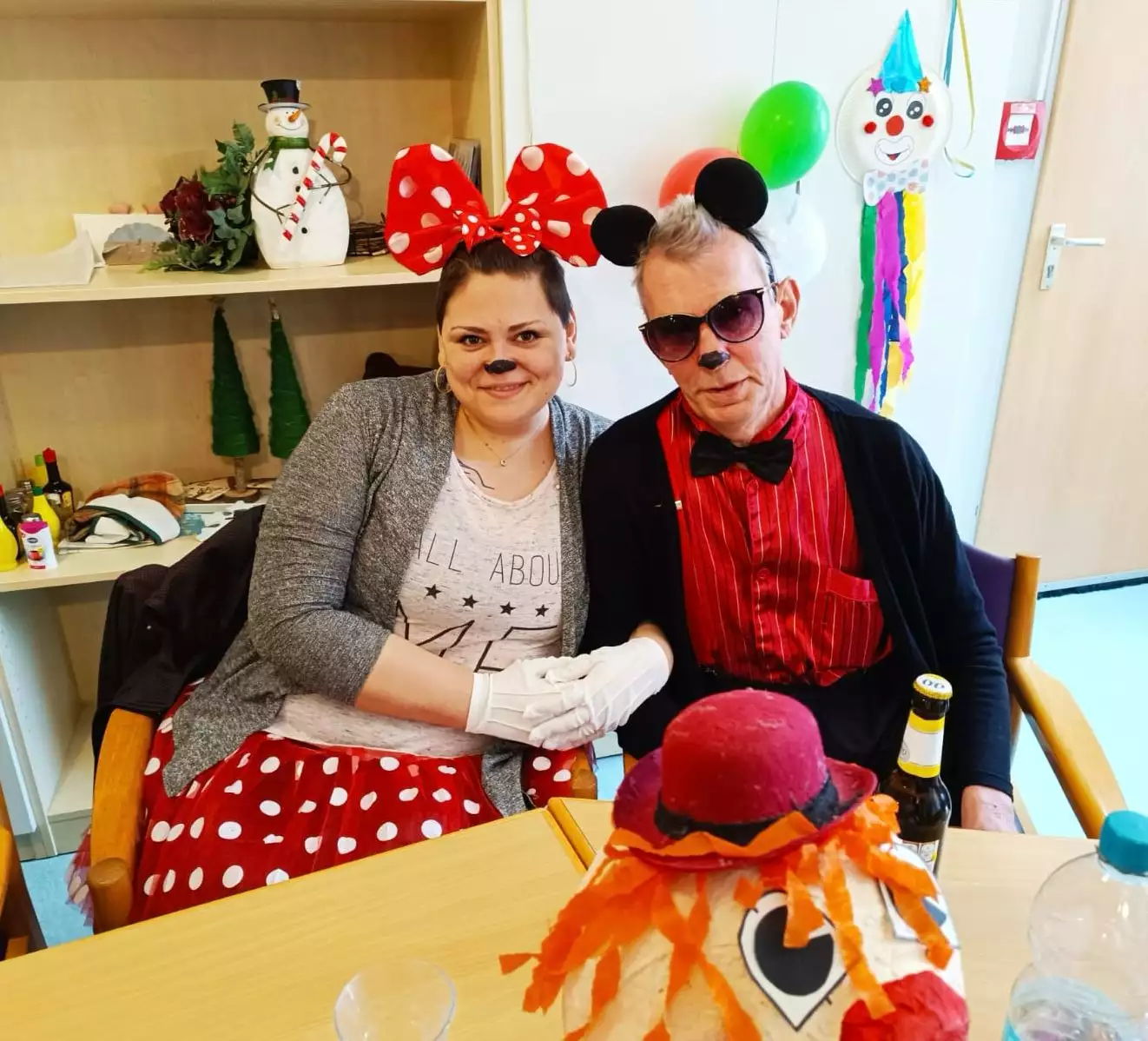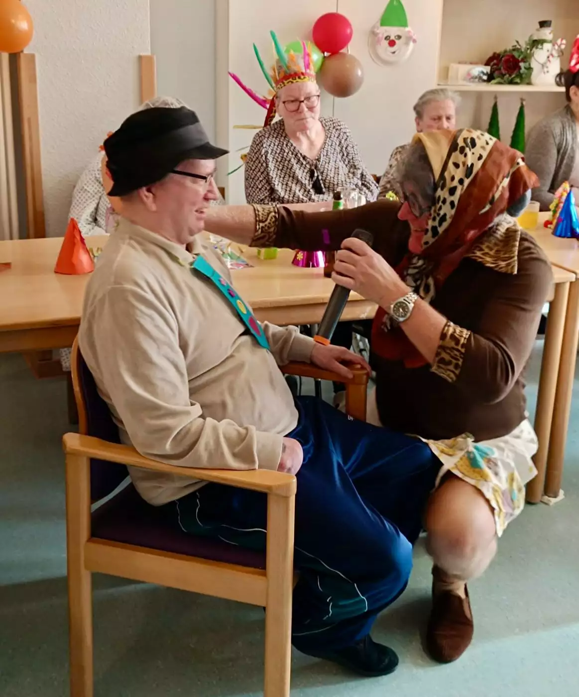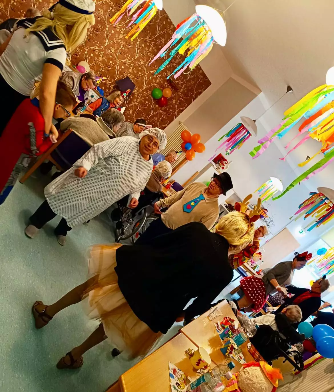 Viele unserer Bewohner waren schon tagelang zuvor eifrig dabei, ihre Kostüme zu planen, welche sie dann zu unserer Faschingsfeier stolz vorführen konnten. Es wurde zu Stimmungsmusik ausgelassen getanzt, gesungen und geklatscht.