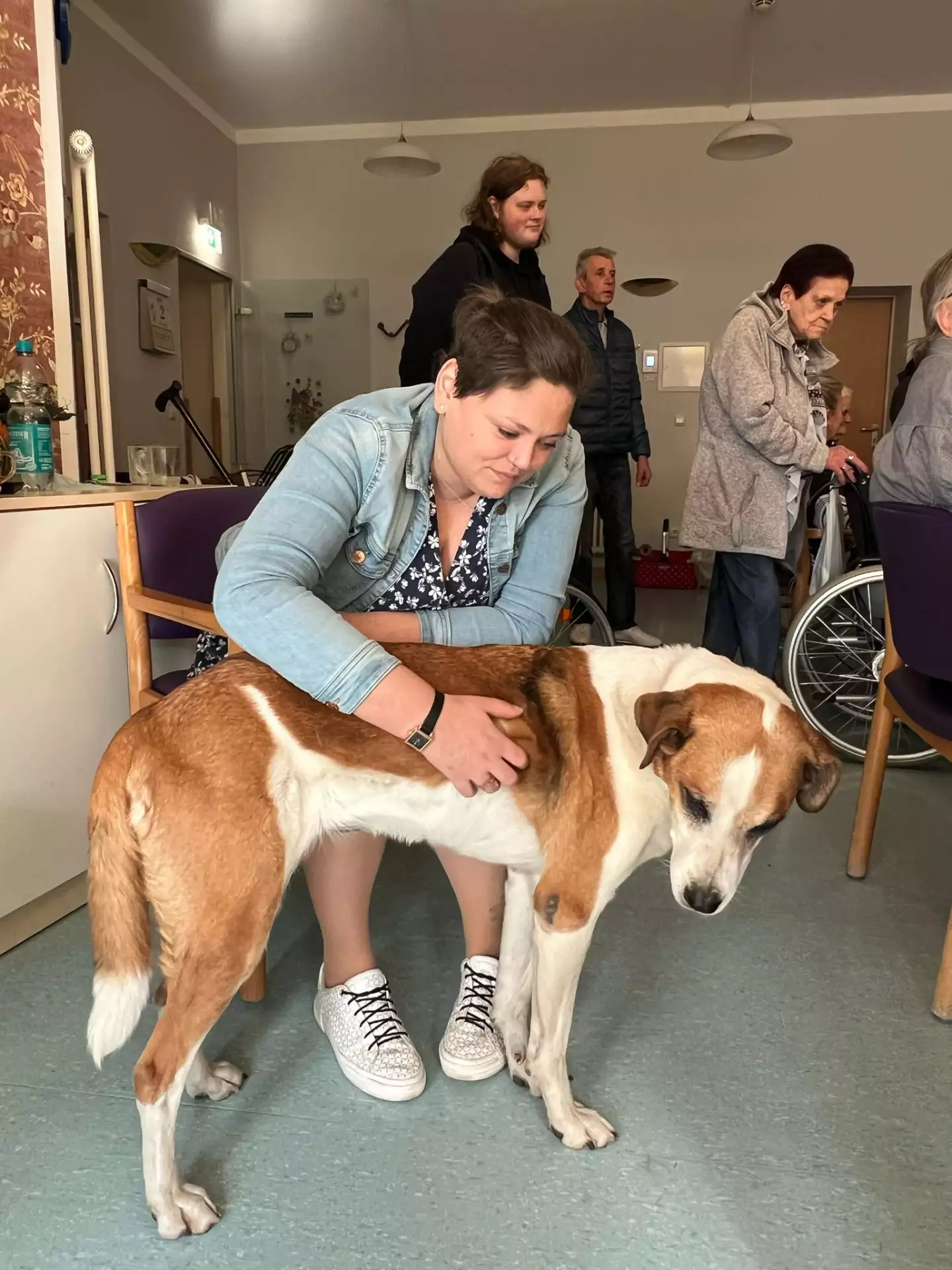 Auch Hündin Paula und Hund Paul waren wieder mit dabei und wurden von den Bewohnern geknuddelt.