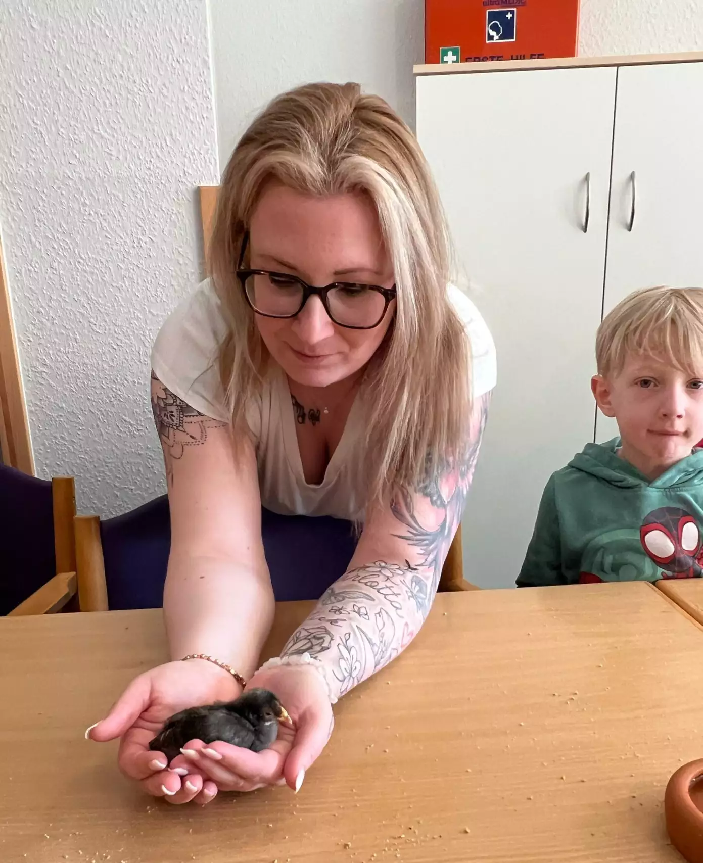 Küken-Besuch in der Bismarckstraße in Bitterfeld