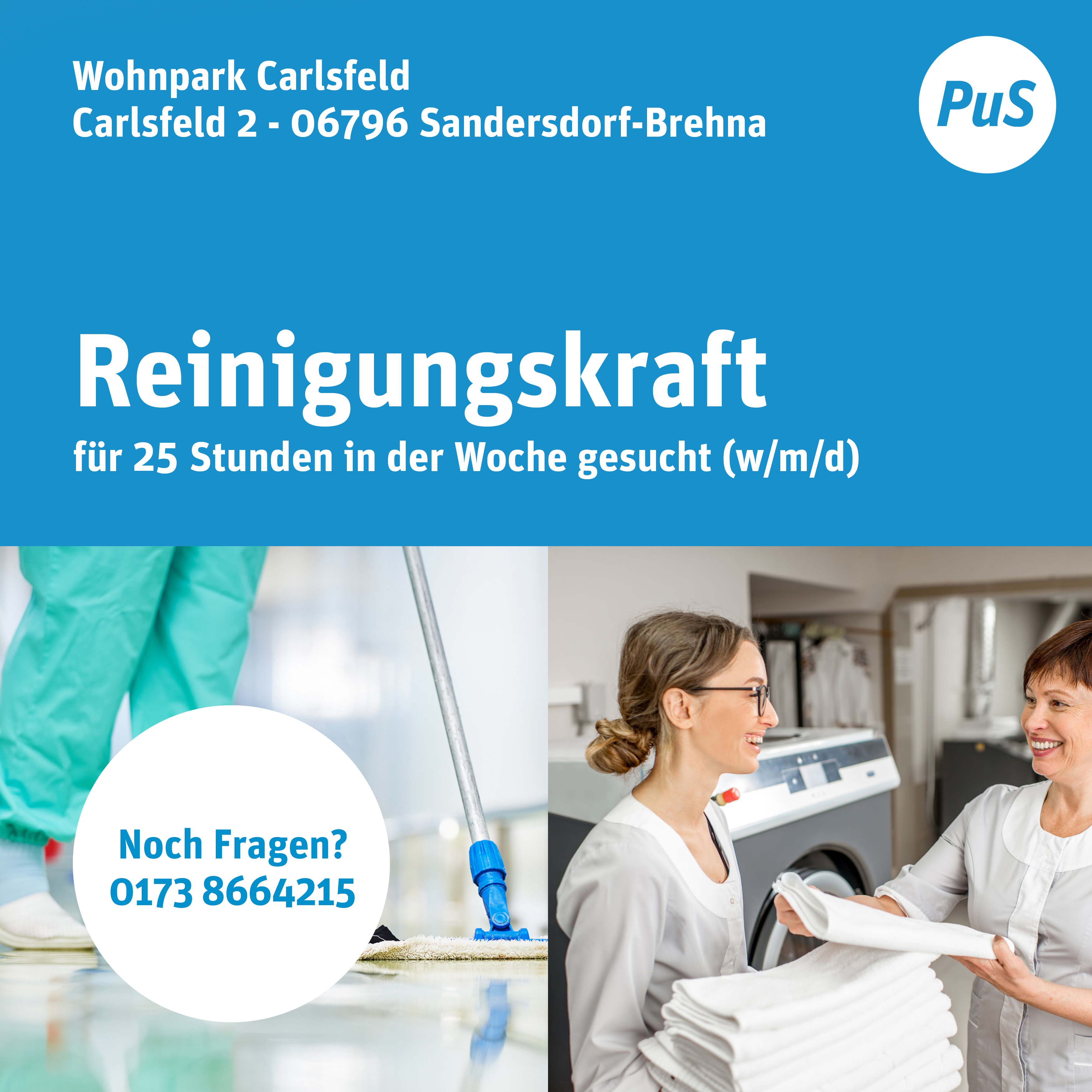 Für unser Seniorenheim in Carlsfeld (Sandersdorf-Brehna) suchen wir ab sofort eine/n neue/n Mitarbeiter/in (m/w/d) in der Reinigung/Verteilerküche für 25 Stunden in der Woche.