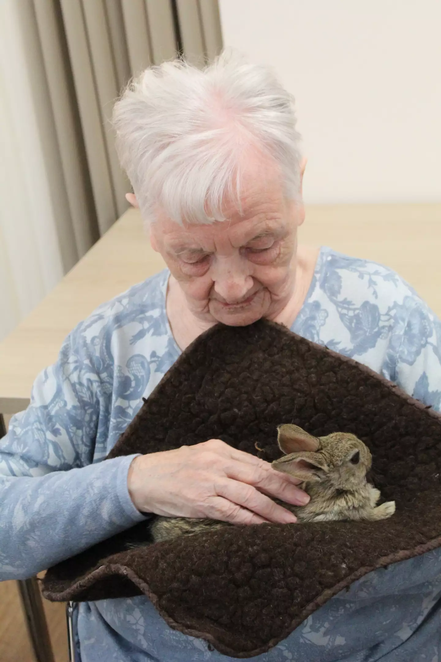 Kuschelzeit im Kirschhof Am Donnerstag, den 16. April hoppelten wieder 7 kleine Häschen mit ihrer Hasenmama vom Leisniger Bauernhof direkt in die Herzen unserer Bewohner und eroberten sie dabei im Sturm.Denn Kuscheln gehört zu den schönsten Dingen der Welt!