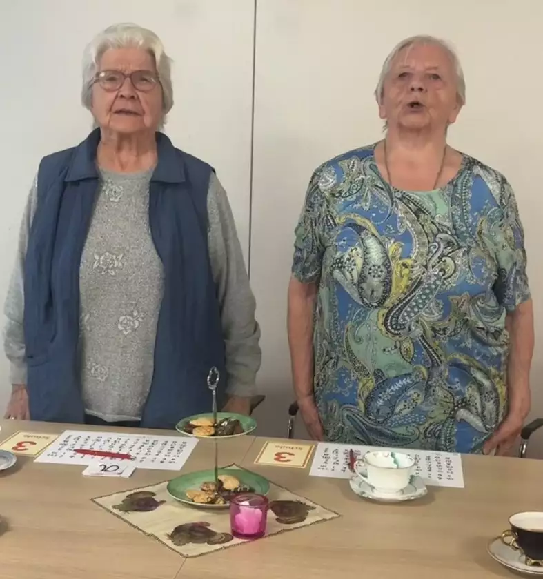 Ei, welch Spaß unsere Bewohnerinnen und Bewohner hatten, als sie sich in die gute alte Schulzeit zurückversetzt fühlten. Die Direktorin „Frau Süßkirsche“ verteilte zur Eröffnung der Schulwoche kleine Zuckertütchen und lud zum Unterricht der „Oberprima“ ein. Da gab es Leibesübungen bei „Frau Hüpf“ und bei Frau „A le Hopp“, Musik bei „Frau Paukenschlag“, Heimatkunde bei „Frau Förstermann“, Werken bei „Frau Pinselstrich“, Lesen- Schreiben -Rechnen bei „Frau Schreiber“ und natürlich auch Hausaufgaben.
