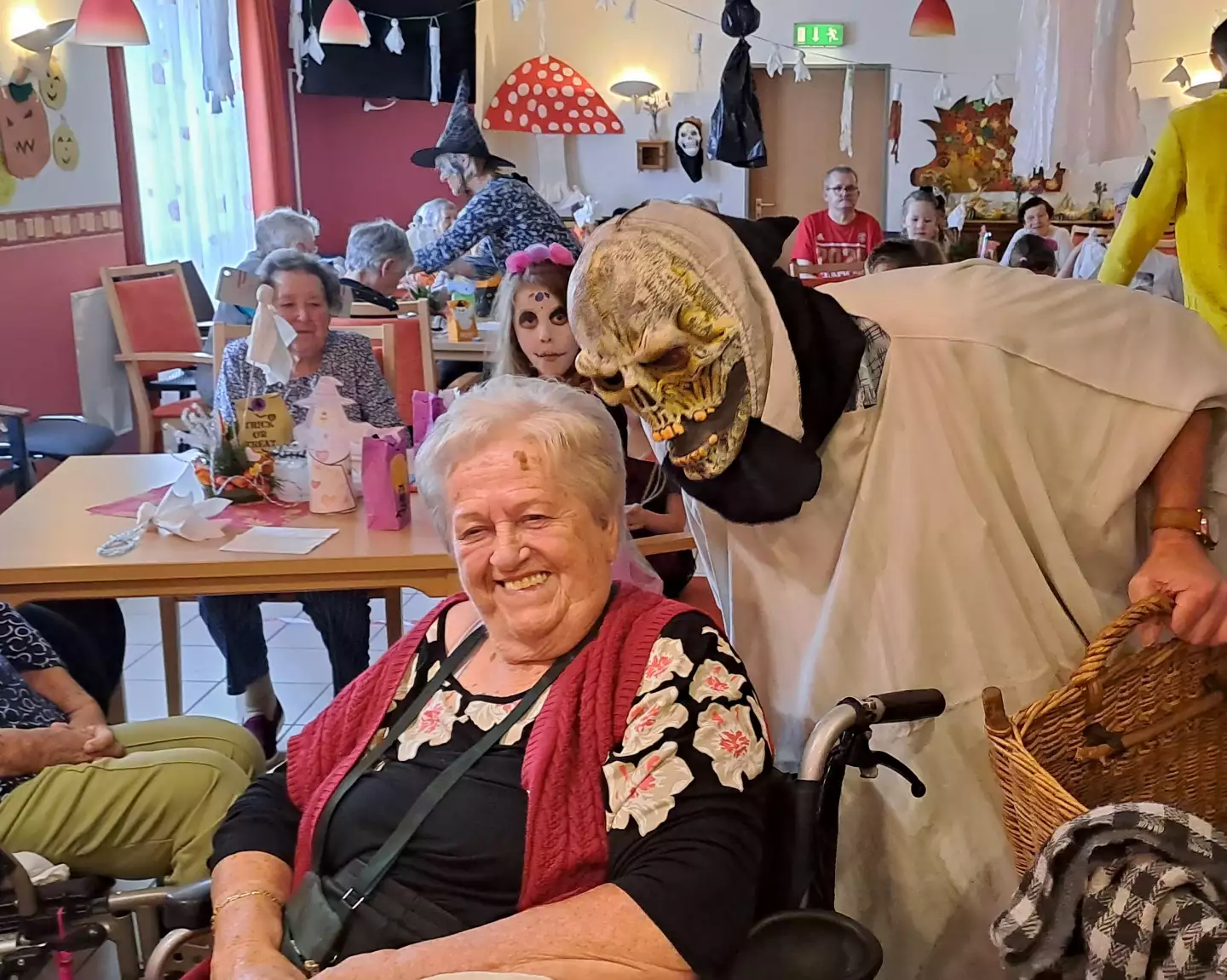 In unserem wunderschönen Garten kann man die Natur im Wandel der Jahreszeiten besonders gut bestaunen. Sofern das Wetter es zuließ, genossen wir hier die frische Luft. Nicht nur die Spaziergänge auch viele schöne Veranstaltungen bereicherten den Alltag unserer Bewohner. Hierzu gehörten die Besucher der Kindergartenkinder. Gemeinsam wurde wieder viel gebastelt, gespielt und bei unserer Halloweenfeier herzlich gelacht.