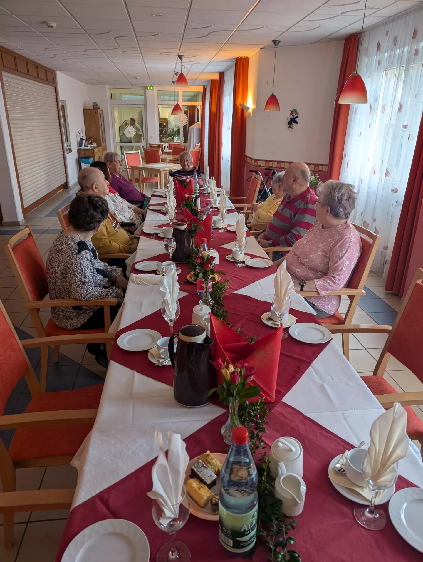 Nach der aufregenden Begehung fanden sich die Bewohner des Heimbeirates aus Gehren und Arnstadt an der liebevoll gedeckten Tafel in der Cafeteria ein und tauschten sich bei einer Tasse Kaffee und leckerem Kuchen aus.