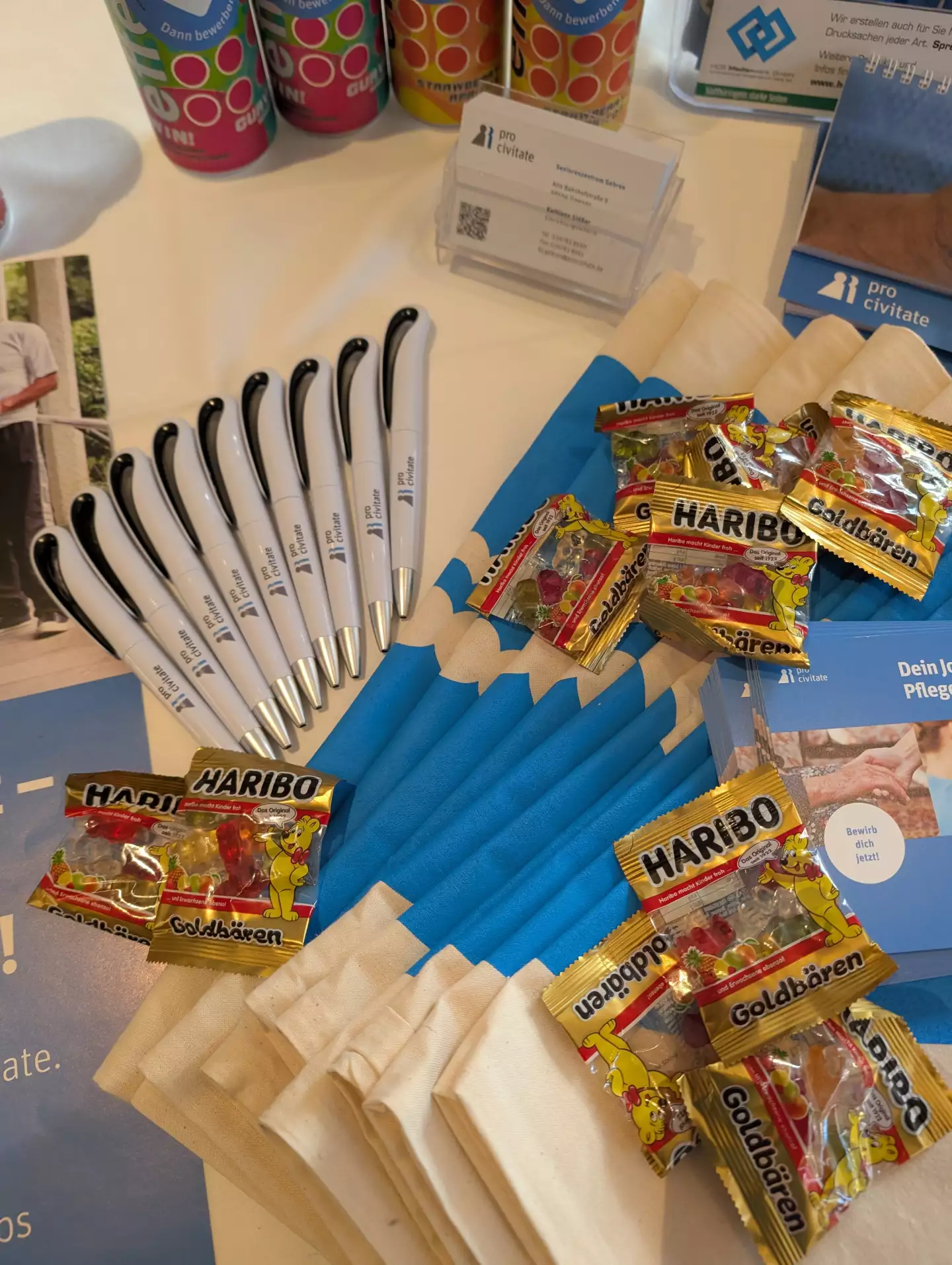 An unserem Stand ergaben sich viele wertvolle Gespräche: Interessenten informierten sich über unsere Angebote, stellten Fragen zu beruflichen Perspektiven und tauschten persönliche Erfahrungen aus. Besonders erfreulich war das große Interesse an modernen Pflegekonzepten, regionalen Unterstützungsstrukturen und innovativen Ansätzen, die den Pflegealltag erleichtern. Darüber hinaus bot die Messe eine hervorragende Plattform für den Austausch mit anderen Akteuren aus dem Gesundheits‑ und Sozialbereich. Erste Gespräche über mögliche Kooperationen wurden bereits geführt – ein vielversprechender Schritt, um gemeinsam die Pflegequalität im Ilm‑Kreis weiter zu stärken. Die positive Resonanz der Besucherinnen und Besucher bestätigt uns in unserer Arbeit und zeigt, wie wichtig Veranstaltungen wie diese für Vernetzung, Aufklärung und regionale Zusammenarbeit sind.