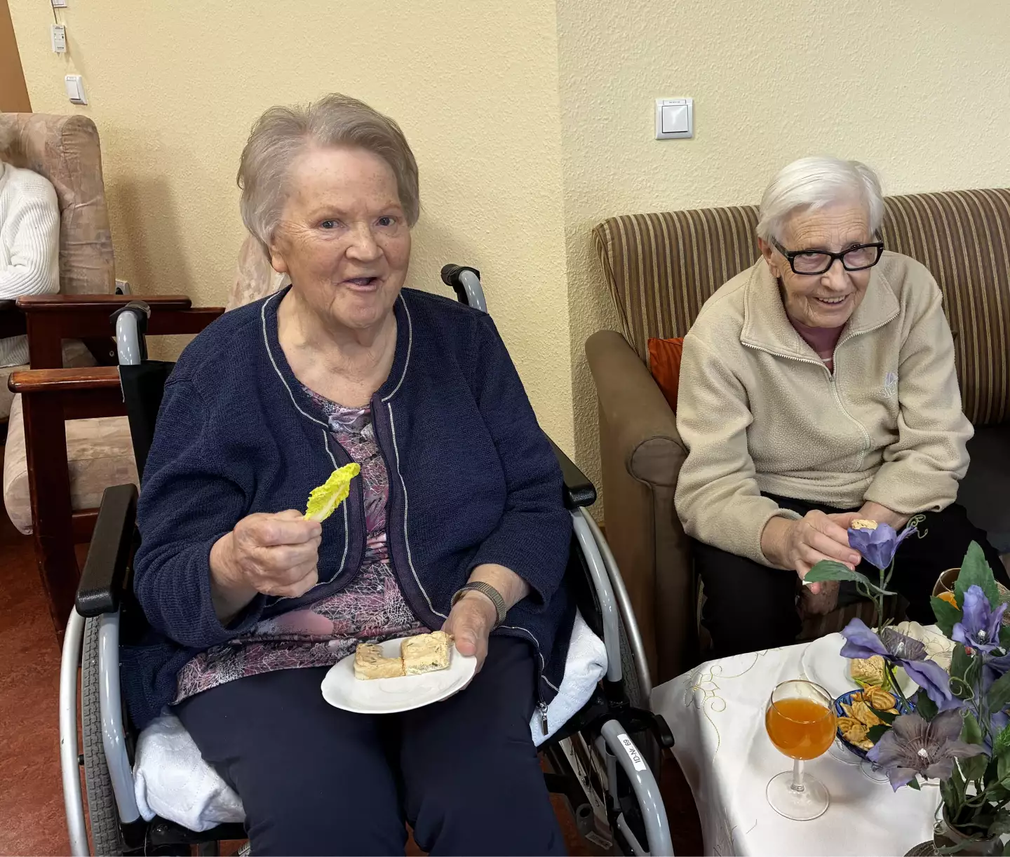 Die Bewohner erfuhren von den Mitarbeitern Wissenswertes über die Käsesorten und die Käseherstellung. Der Käsesalat schmeckte allen besonders gut. Begleitet von Weintrauben und einem guten Glas Wein genossen die Bewohner nicht nur die Käsespezialitäten, sondern auch den regen Austausch über kulinarische Erinnerungen. Es war ein sehr gelungener Nachmittag, der alle Sinne ansprach.