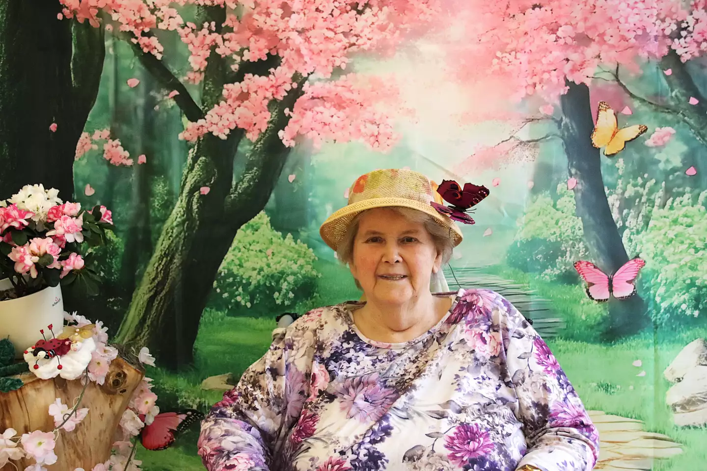 Vor einer blühenden Kulisse durften unsere Bewohner Platz nehmen. Die Freude war allen anzusehen und so entstanden diese schönen Erinnerungsbilder.