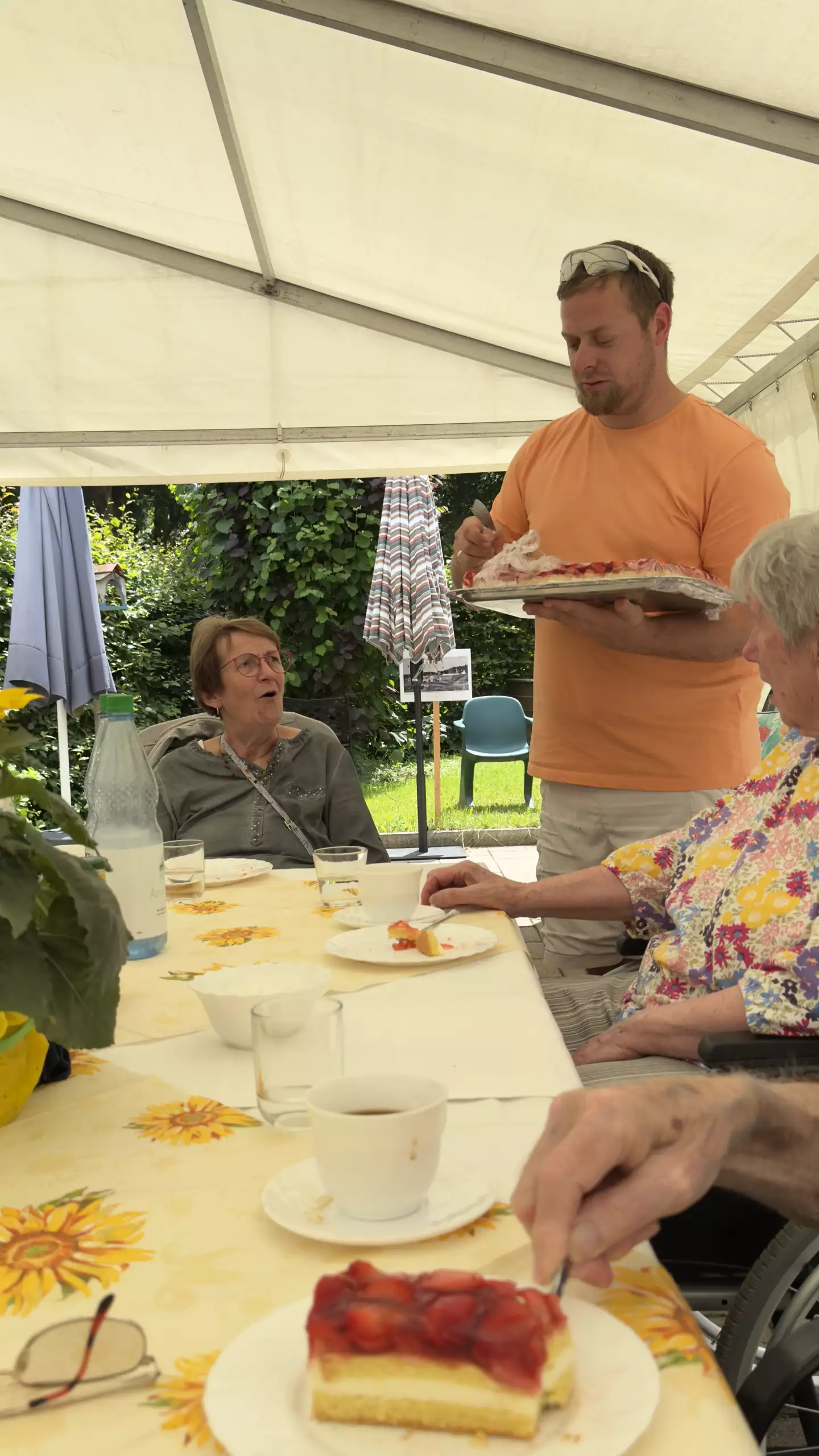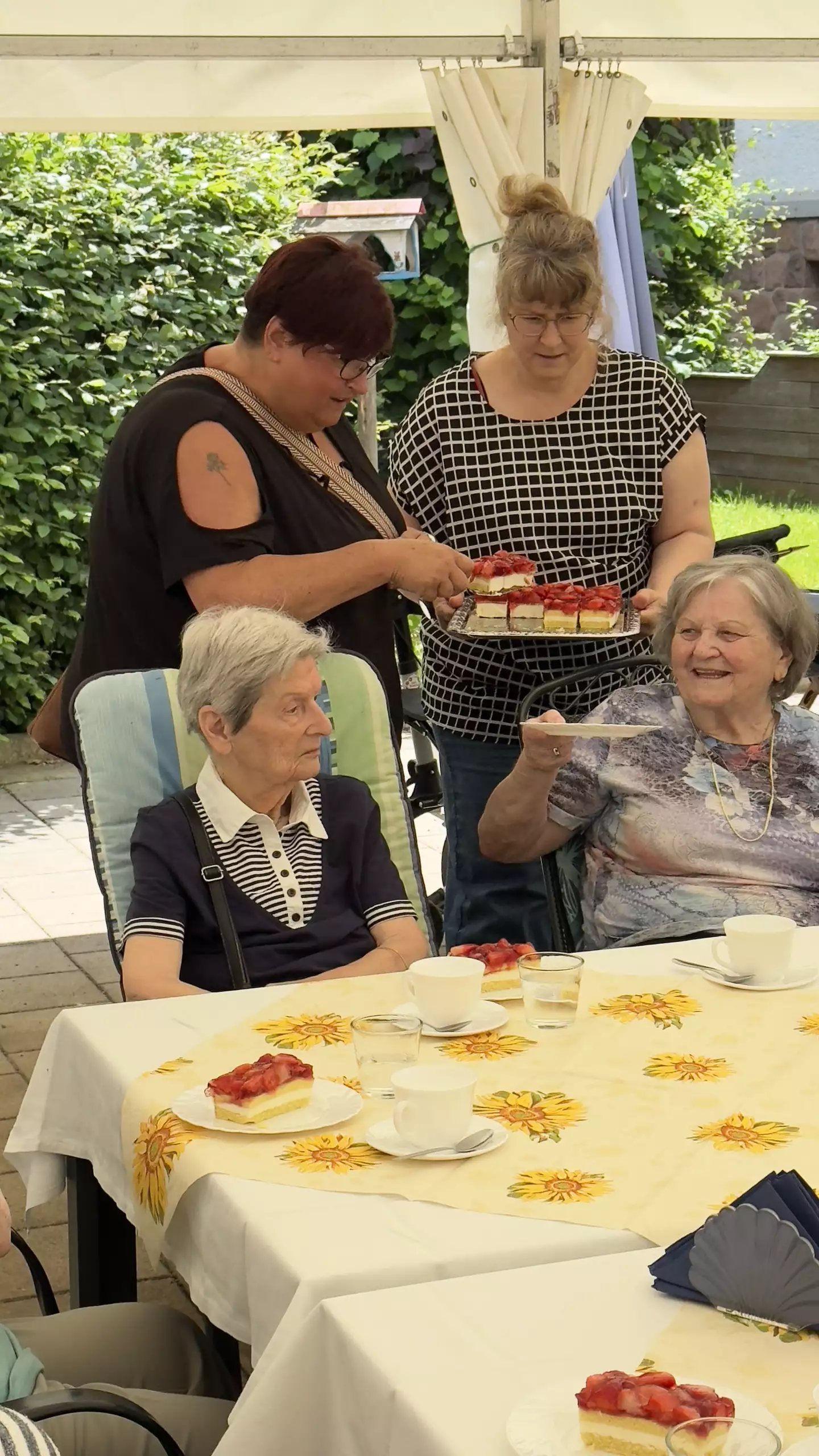 Am 17. Juni 2025 durften wir gemeinsam ein wunderschönes Sommerfest mit den Patienten der Häuslichen Alten- und Krankenpflege im Festzelt auf dem Gelände des Pflegeheimes Jahnsdorf feiern. Bei strahlendem Sonnenschein genossen unsere Patientinnen und Patienten köstlichen Kaffee und frische Erdbeerschnitten, die für süße Momente sorgten. Auch das leckere Eis sorgte für erfrischende Abkühlung und fröhliche Stimmung.