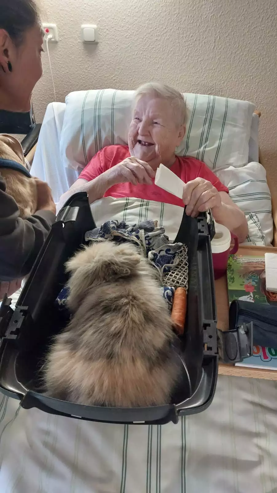 Unsere Bewohnerinnen und Bewohner zeigten sichtlich Spaß an diesem besonderen Tierbesuch. Es wurde gelacht, gestreichelt, erzählt und manche Erinnerung an frühere Haustiere wurde wieder lebendig. Die Tiere schafften Momente der Nähe und des Wohlbefindens – kleine Augenblicke, die große Wirkung hatten.