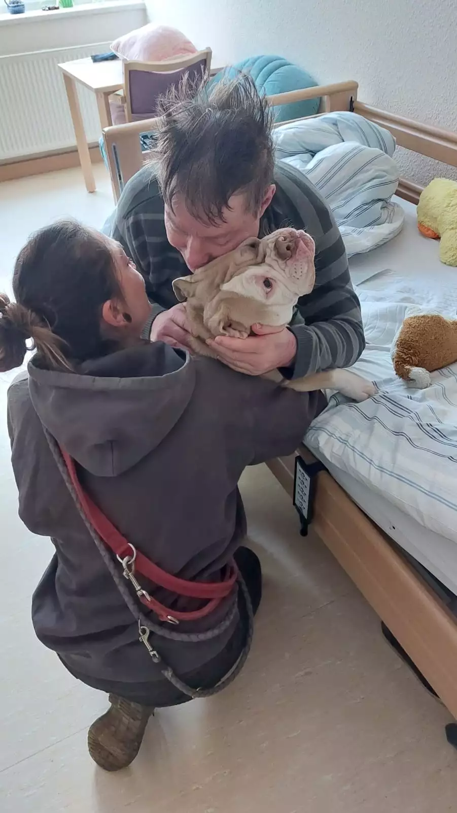 Schon beim Eintreten der tierischen Gäste war spürbar, wie viel Wärme und Freude sie in die Zimmer brachten. Franz ließ sich geduldig streicheln und sorgte mit seinem weichen Fell für viele glückliche Gesichter. Piri und Helmut wiederum begrüßten jeden mit neugierigen Blicken, wedelnden Schwänzen und einer großen Portion Zuneigung.