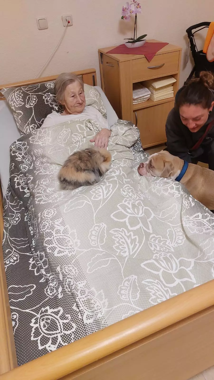 Ein ganz besonderes Erlebnis durften unsere bettlägerigen Bewohnerinnen und Bewohner vor Kurzem genießen: Die Tierpension war zu Besuch und brachte den zutraulichen Hasen Franz sowie die beiden fröhlichen Hunde Piri und Helmut mit.