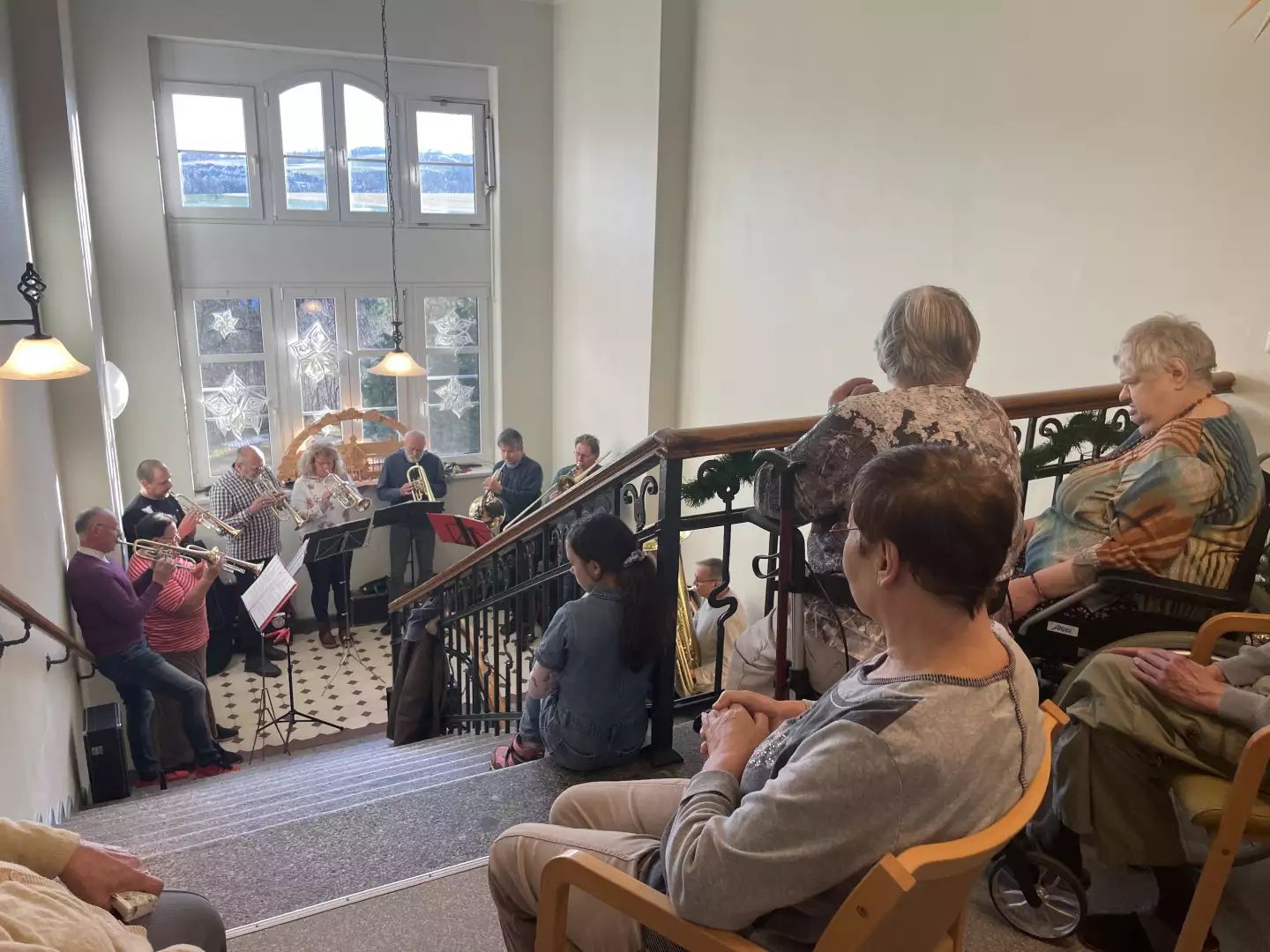 Zum 4. Advent durften wir im Heim ein ganz besonderes Konzert erleben. Der Jahnsdorfer Bläserchor stellte sich im Treppenhaus auf und erfüllte den Raum mit seinen lieblichen Klängen.