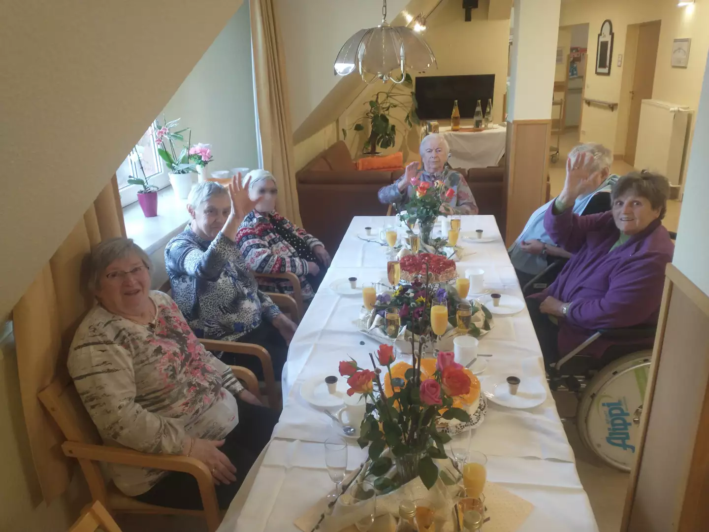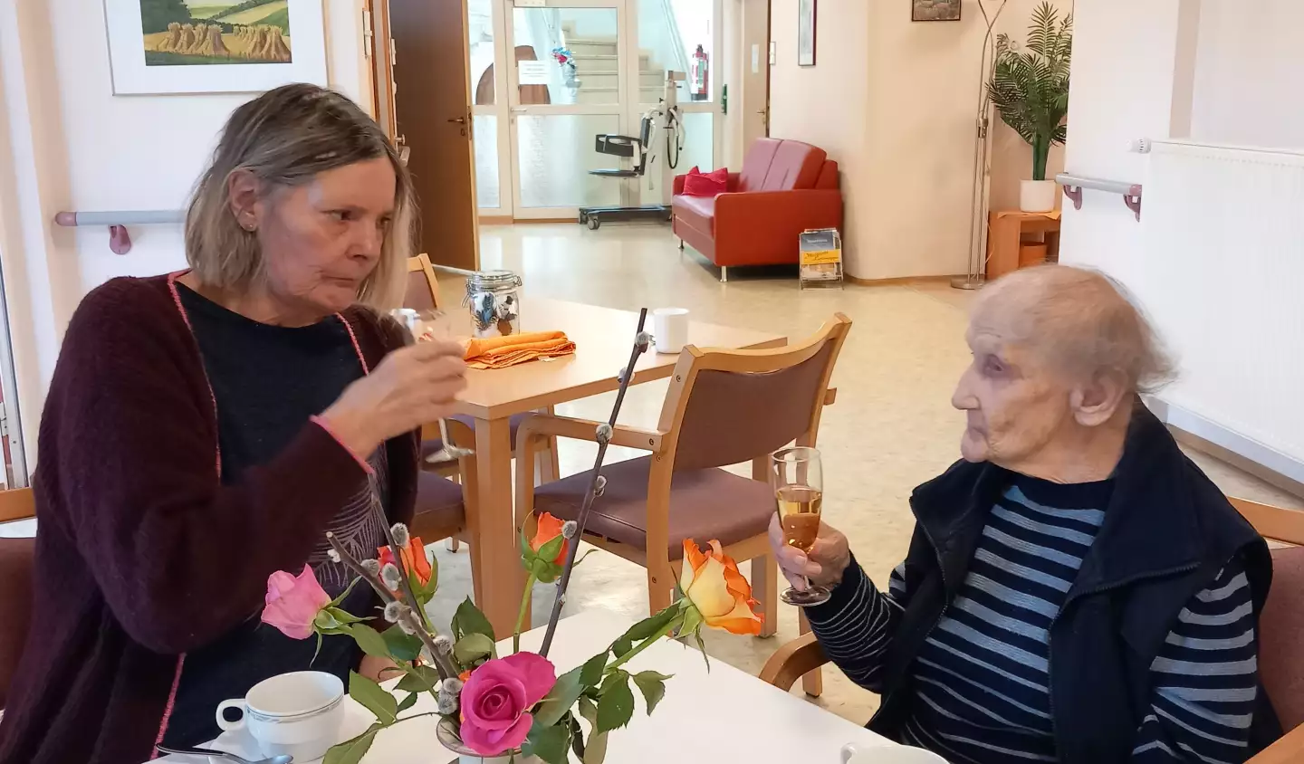 Unsere Frauentagsfeier im Pflegeheim war ein rundum gelungener und fröhlicher Nachmittag. Zwei verschiedene, herrlich leckere Torten standen zur Auswahl, sodass wirklich jede auf ihre Kosten kam – und das ein oder andere zweite Stück ließ sich kaum vermeiden 😉. Dazu gab es fruchtigen Saft und zum Anstoßen unseren ganz besonderen hauseigenen Eierlikör – selbstverständlich alkoholfrei, aber mindestens genauso lecker!
