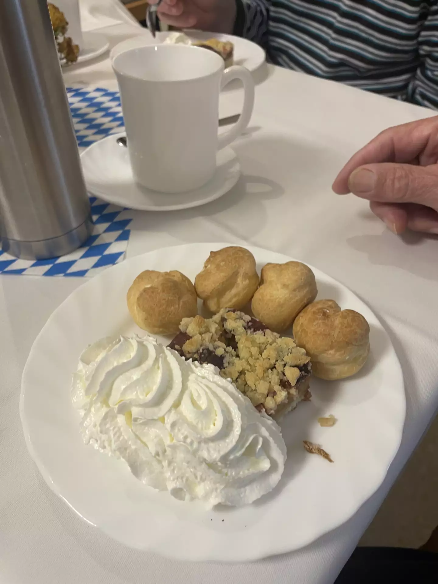 Schon am Nachmittag zog der Duft von frisch gebackenem Pflaumenkuchen und würzigem Flammkuchen durch die Gänge. Beim Kaffee wurde nicht nur geplaudert, sondern auch schon fleißig mit den Füßen gewippt – die Musik war einfach zu mitreißend.