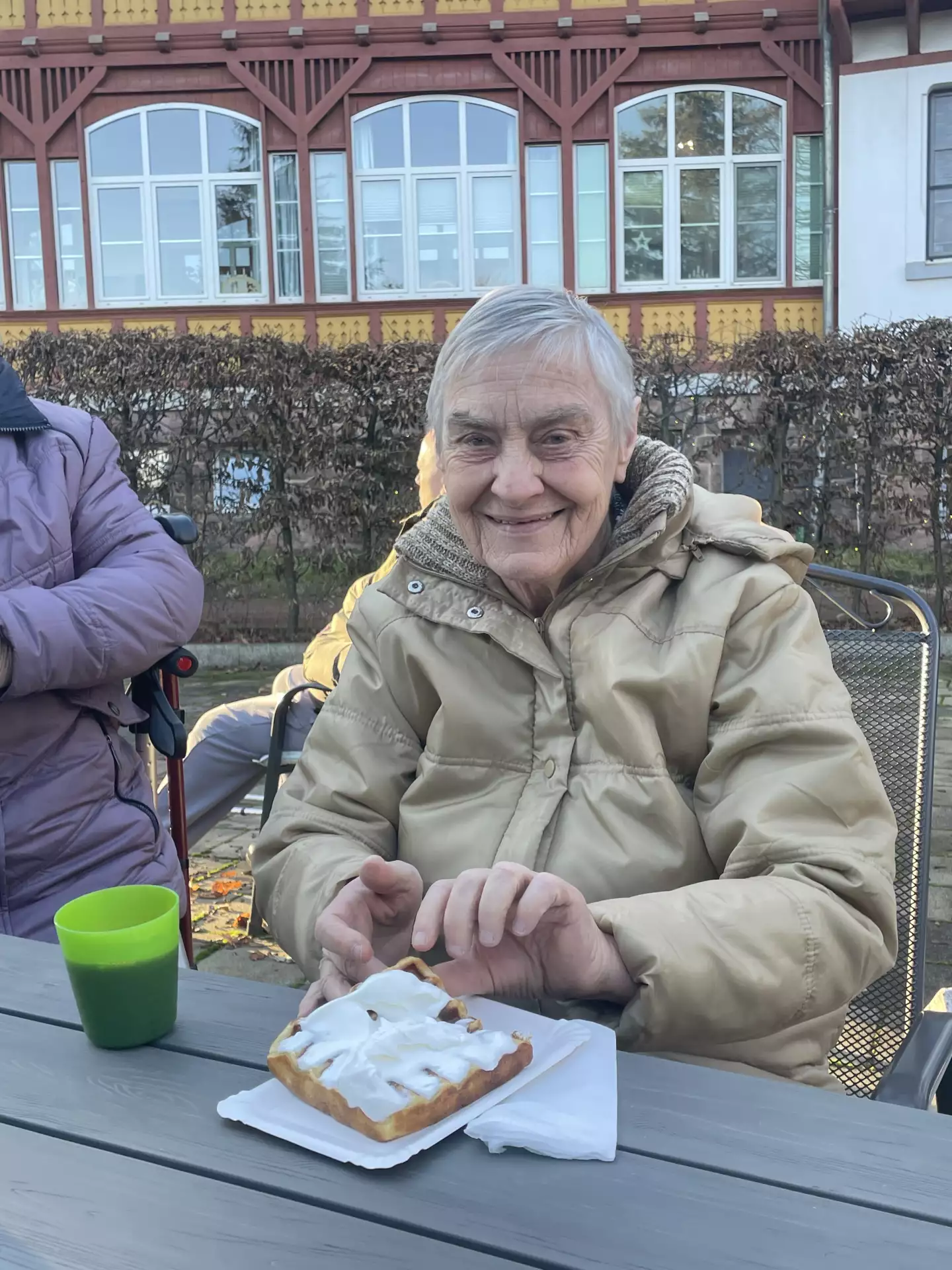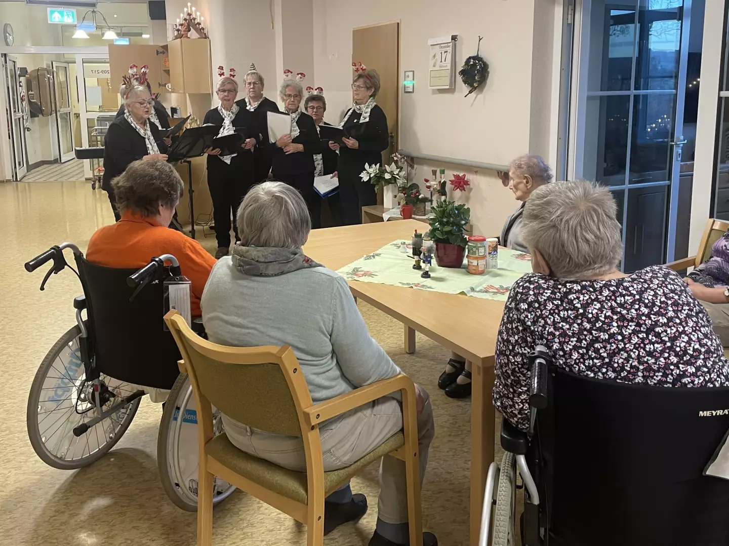 Besonders schön war, dass auch an unsere bettlägerigen Bewohnerinnen und Bewohner gedacht wurde: Ihnen wurde eine Waffel direkt ans Bett gebracht, damit wirklich niemand leer ausging. Ein ganz besonderer Höhepunkt des Nachmittags war anschließend das Konzert der Jahnsdorfer „Singemäd“. Mit viel Charme, fröhlichen Stimmen und einer ordentlichen Portion Weihnachtsstimmung brachten sie so manches Bein zum Mitwippen und ließen den Nachmittag beschwingt, besinnlich und mit einem Lächeln auf den Lippen ausklingen.