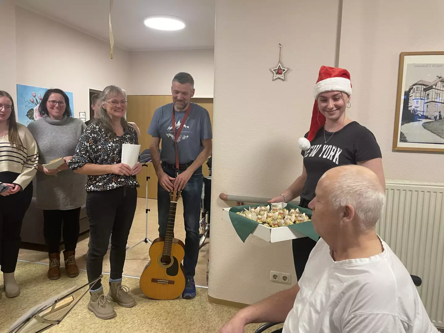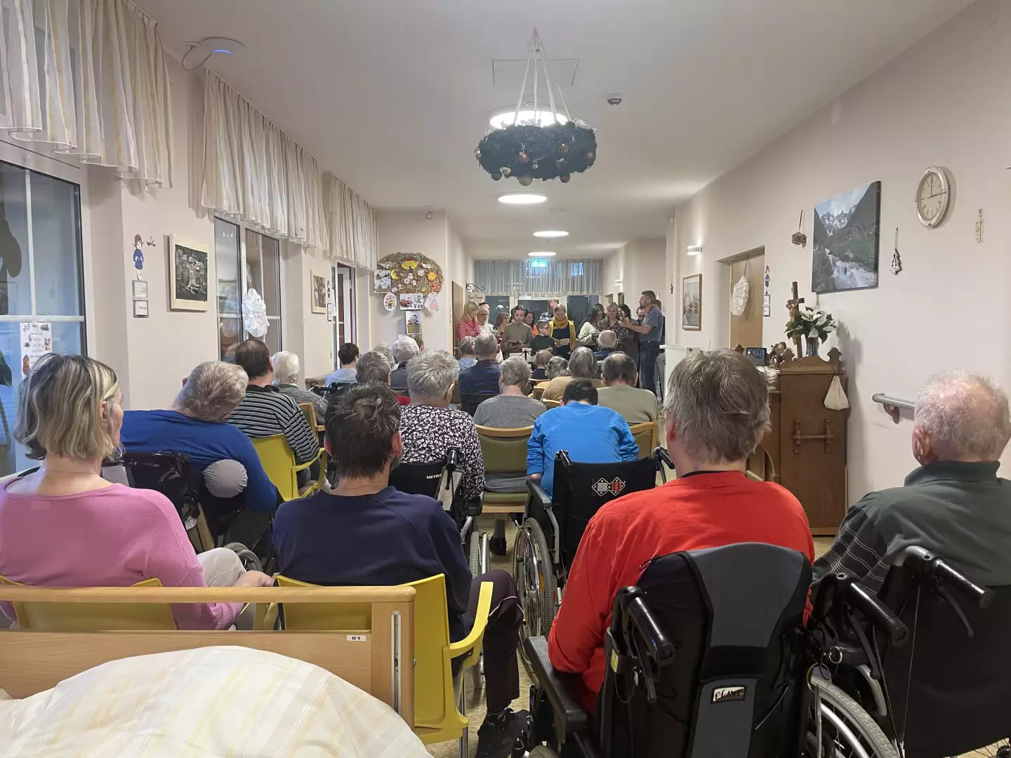 Der Besuch des Stollberger Chors brachte unser Pflegeheim zum Klingen – und das im wahrsten Sinne des Wortes. Von „Süßer die Glocken nie klingen“ bis hin zum fröhlichen „Raachermannel“ erfüllten viele wunderschöne Lieder den Raum und zauberten unseren Bewohnerinnen und Bewohnern ein warmes Lächeln ins Gesicht. Manche wippten im Takt, andere summten leise mit – und alle genossen die kleine musikalische Reise durch die Adventszeit.