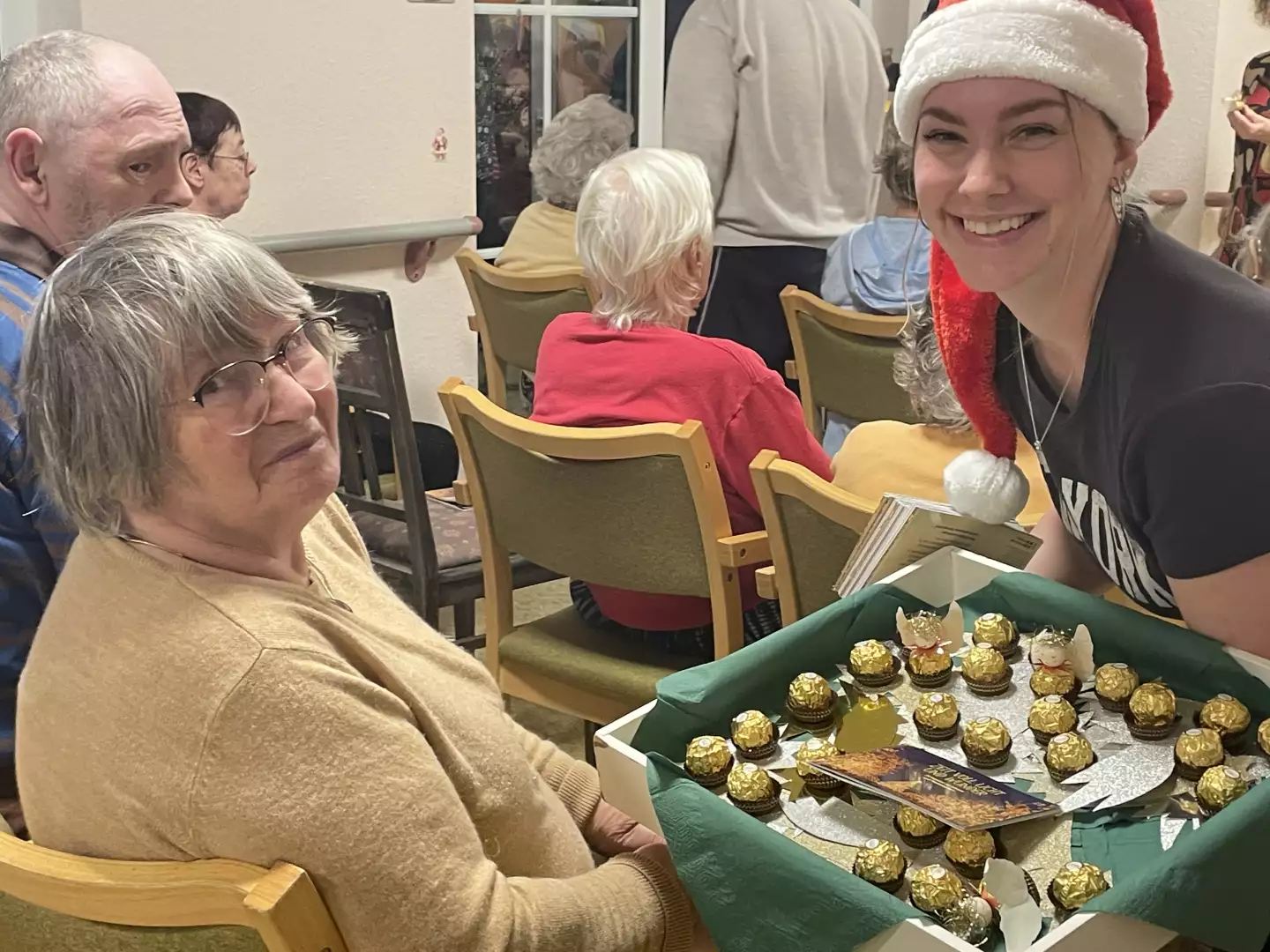 Nach dem stimmungsvollen Vorsingen gab es noch eine liebevolle Überraschung für unsere Bewohnerinnen und Bewohner, die mit strahlenden Augen entgegengenommen wurde. Und weil Singen hungrig macht, erhielt der Chor zum Dank ein paar kleine Leckereien – sehr zur Freude der Sängerinnen und Sänger.