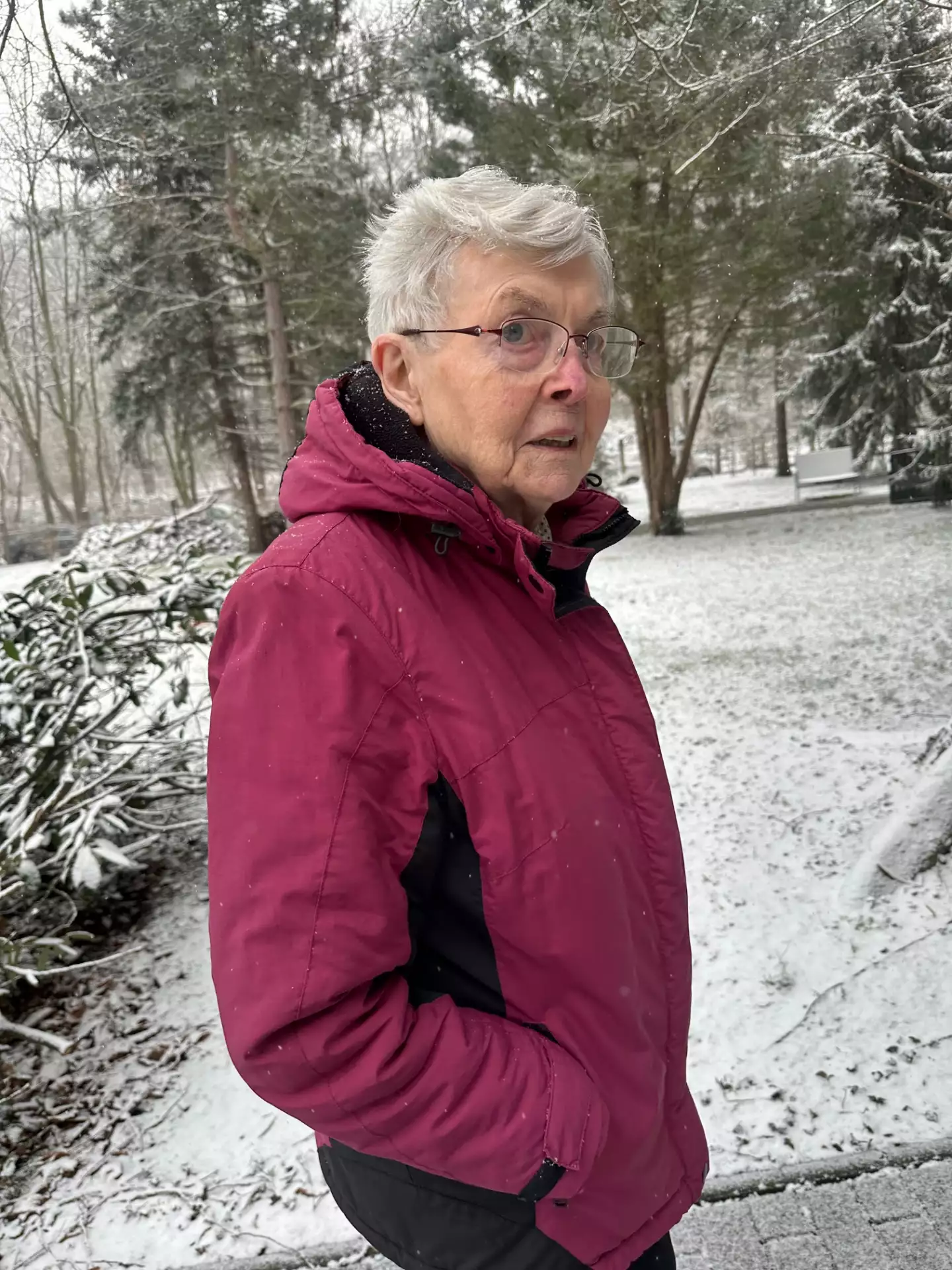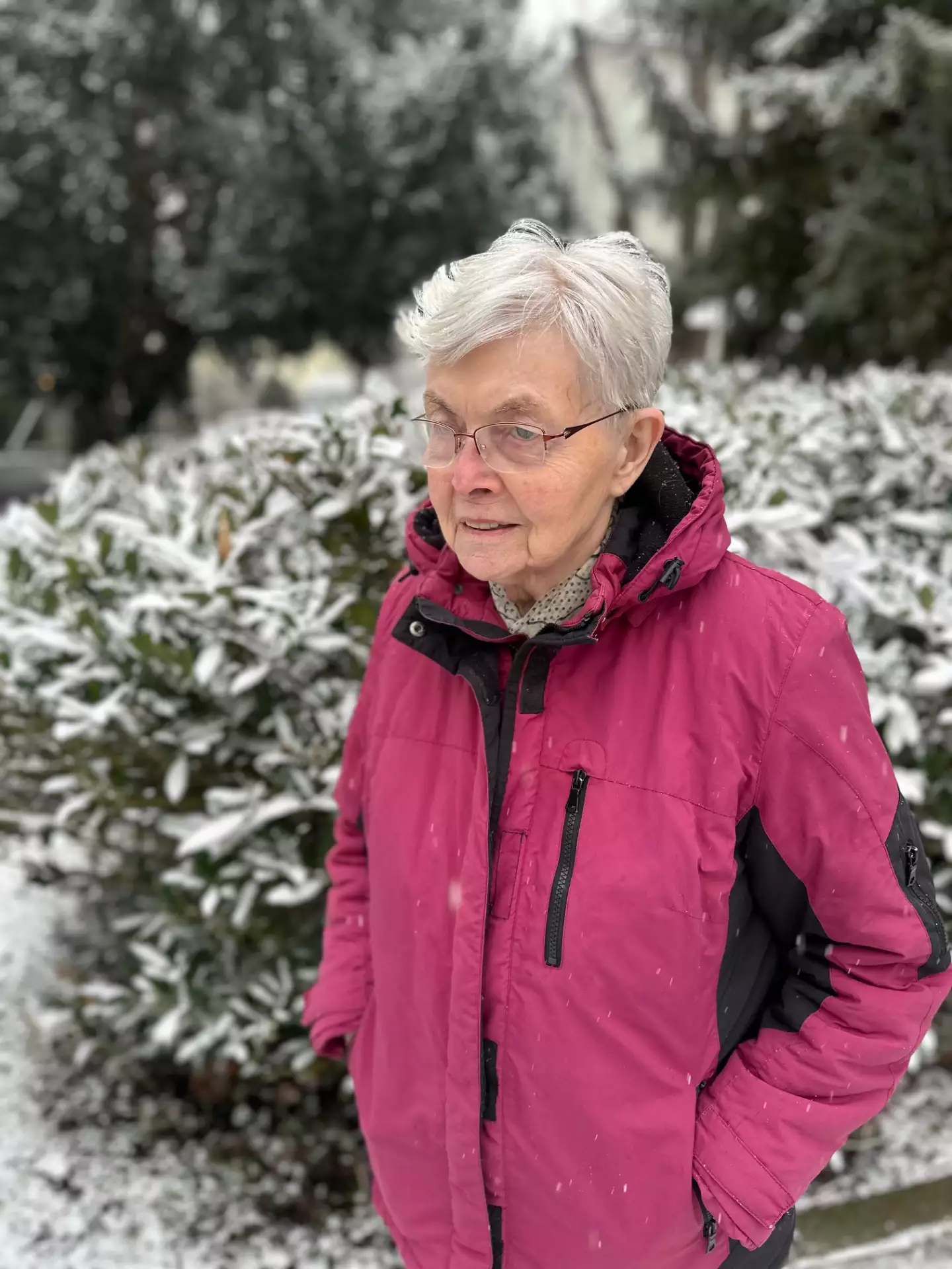 Und tatsächlich, sah man auch vereinzelte Bewohner im Garten. Frau Milbradt traute sich heraus und so gab es gleich ein kleines Fotoshooting im Schnee. Natürlich muss man vorsichtig gehen, um nicht zu fallen, aber es hat alles gut geklappt. Und wir denken, die nächste Schneeballschlacht kommt bestimmt.
