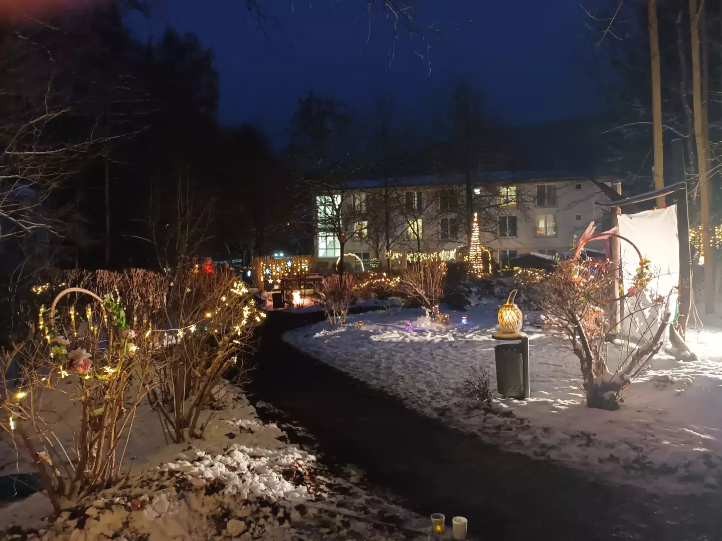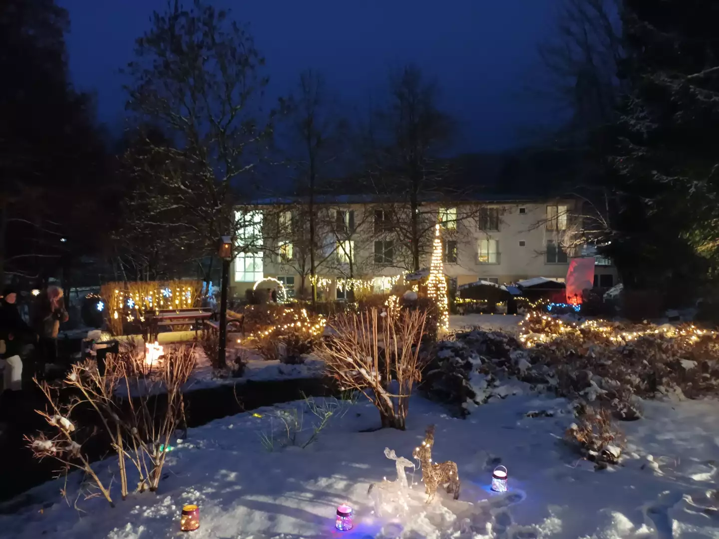 Zum ersten Mal erstrahlte der fantasievoll inszenierte Rundweg durch unseren Sinnesgarten. Funkelnde Lichter, untermalt mit festlichen Musikklassikern, bereiteten allen Beteiligten unvergessliche Momente. Am Lagerfeuer konnten sich alle bei Bratwurst und Punsch wärmen und das Lichtspektakel wirken lassen.