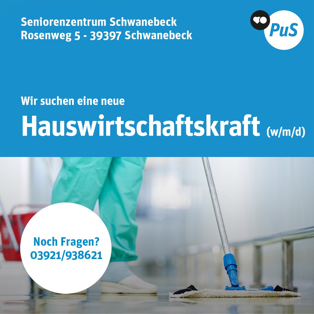 Für unsere Pflegeeinrichtung in Schwanebeck suchen wir ab sofort einen neuen Mitarbeiter in der Hauswirtschaft (w/m/d) für 20 Stunden in der Woche.